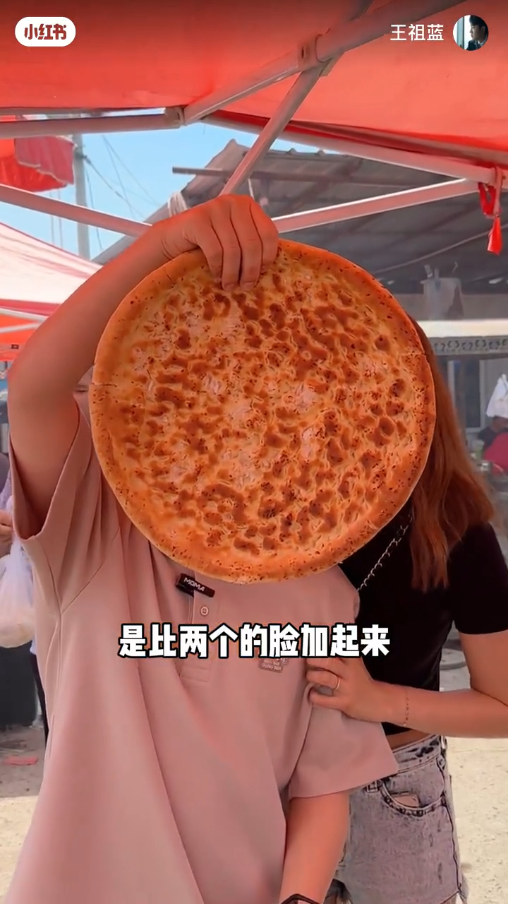 王祖藍說:“見過這麼大的烤馕嗎? 是比兩個的臉加起來還要大?”,不管大小,都是5元。