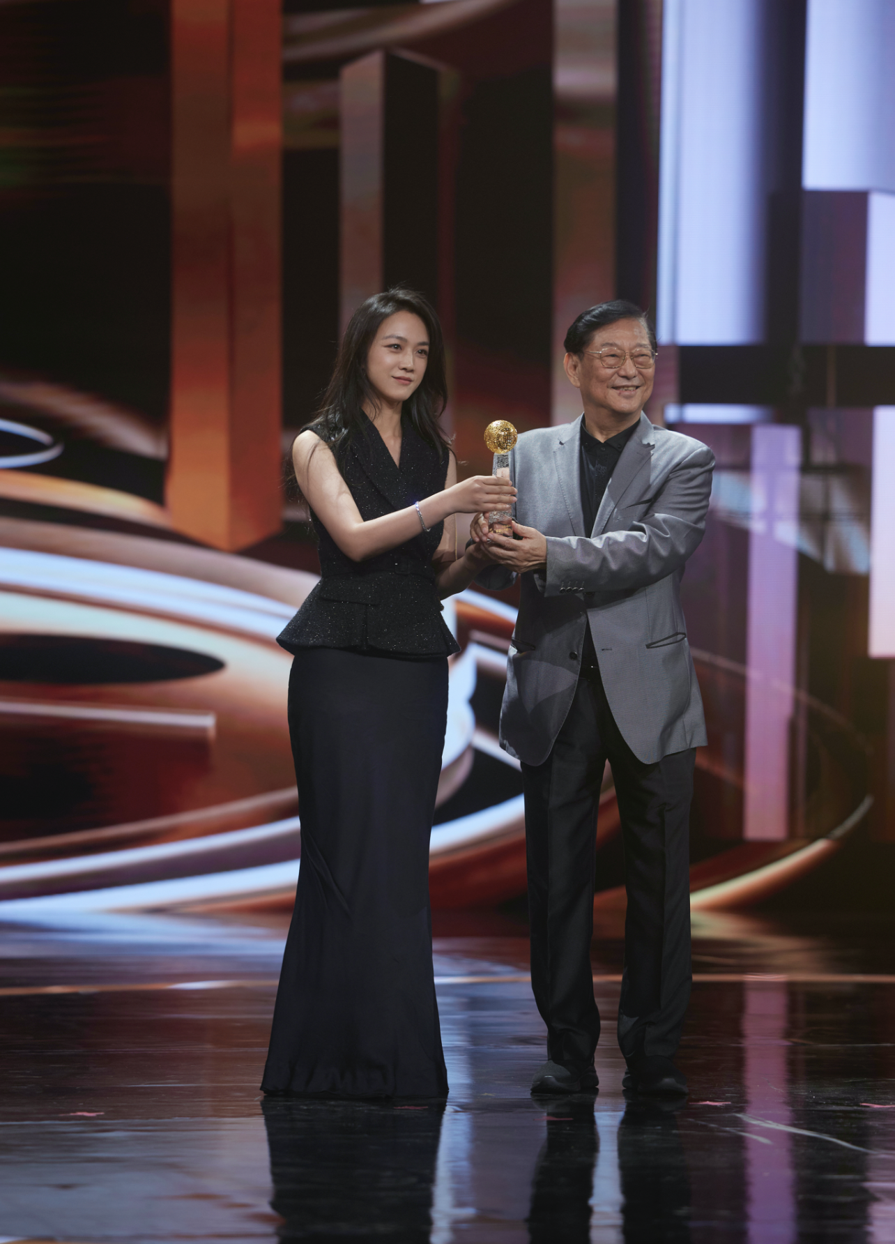 ▲香港電影工作者總會永遠榮譽會長、香港電影導演會永遠榮譽會長吳思遠為湯唯頒獎