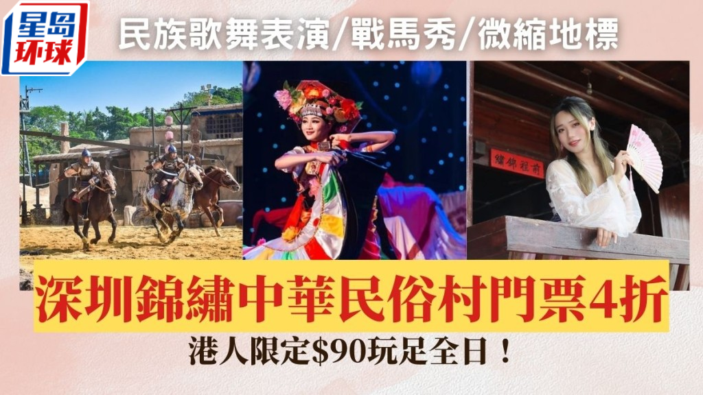 位于深圳南山區的人氣景點“錦繡中華民俗村”近日推出港人優惠,門票減價至4折,只需$90即可入場玩足園區內多個設施,包括中國微縮地標、民俗村寨,亦可欣賞民族歌舞表演、戰馬秀等精彩演出,絕對是深圳好去處之一,即看優惠詳情!