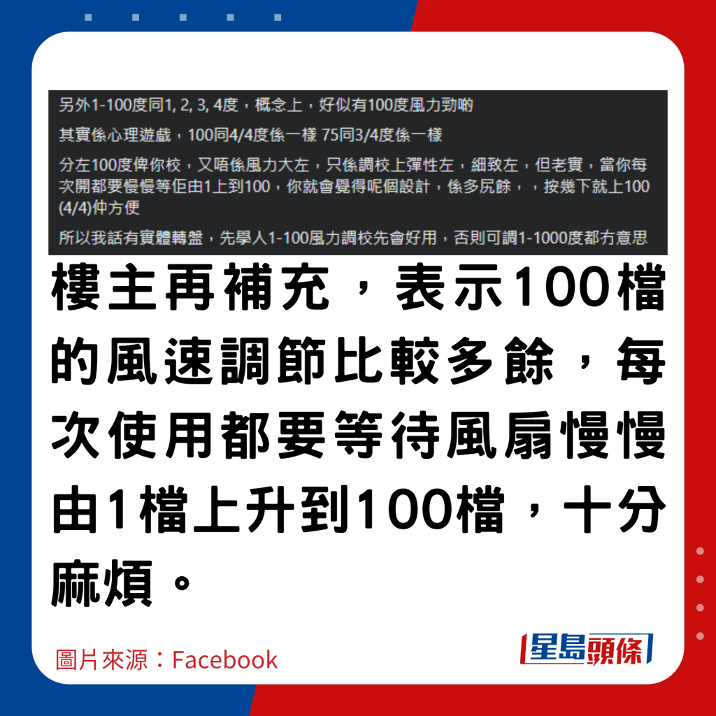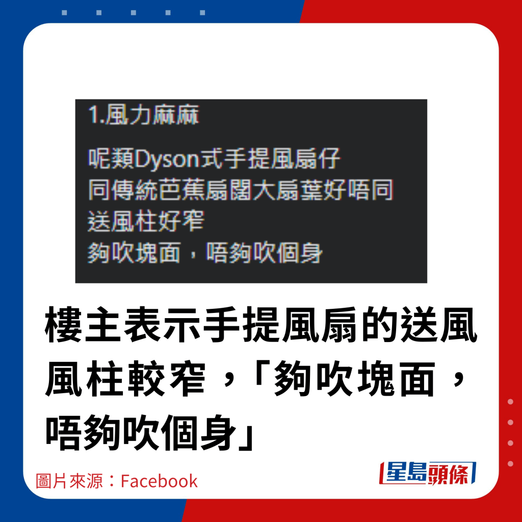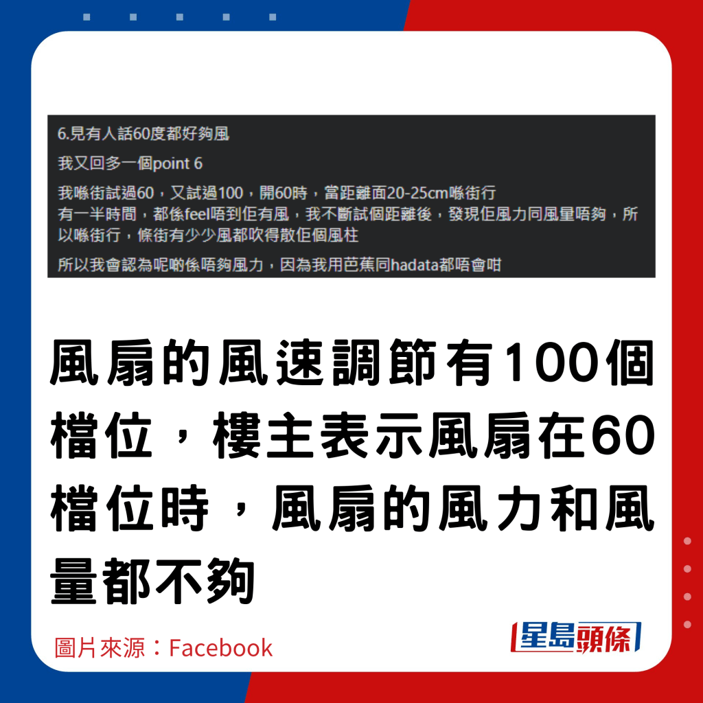 近日有網民在Facebook群組“黃金高登灣電旺電腦場情報關注組( 黃金商場/ 高登商場/ 旺角計算機中心/ 灣仔計算機城/ 298計算機特區)”發文,分享自己對M57制冷手提風扇的用后感,列出6點指該風扇只是“智商稅”,警告網民不要買,直言“救得一個得一個”,點擊圖輯看網民列舉6點勸勿購買!