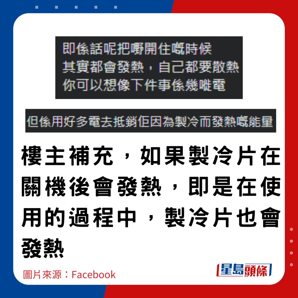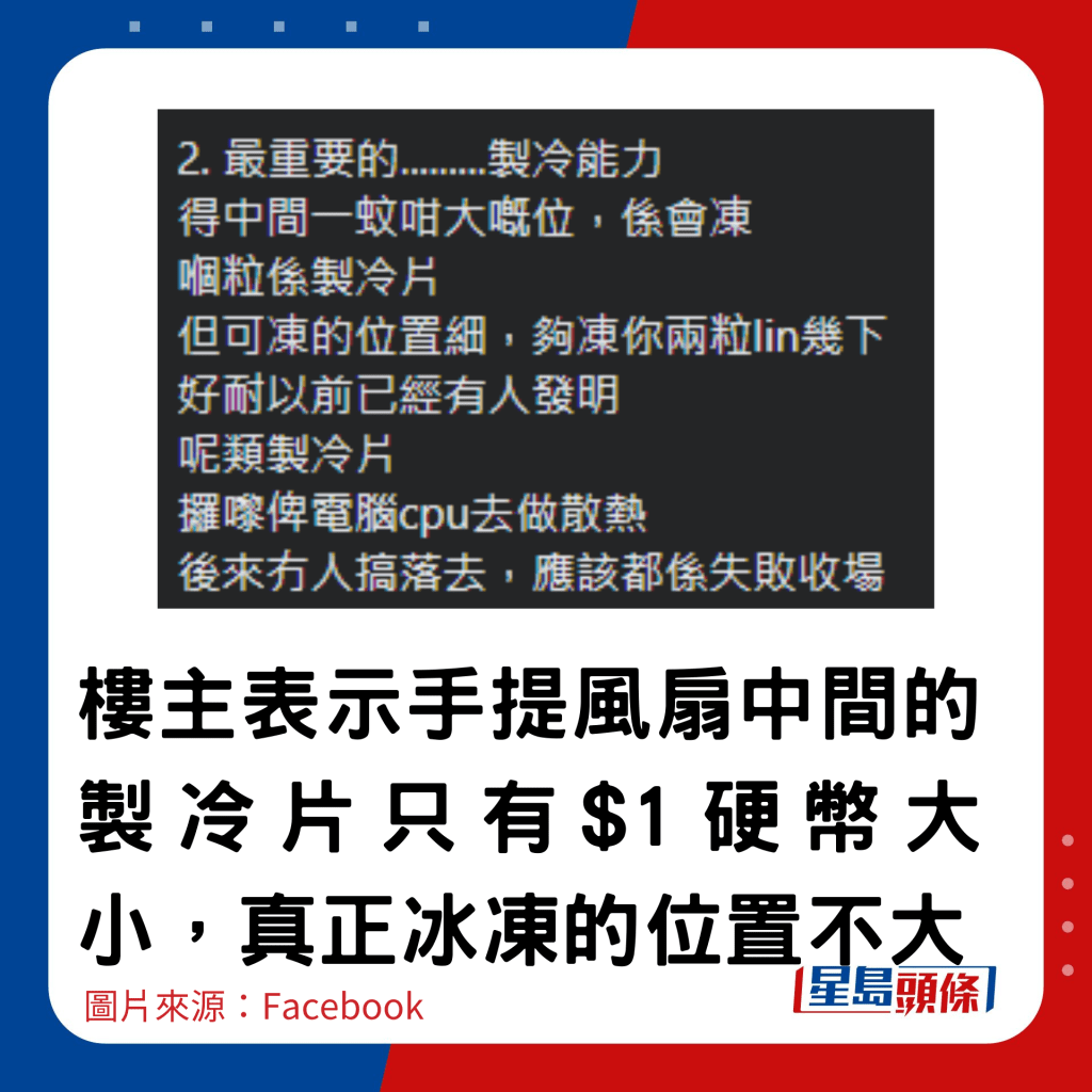 亦有網友反駁樓主,認為只是主觀問題,“果粒野(制冷片)系用嚟凍風,唔系用嚟凍身架”、“我覺得用途唔同,呢把唔系用風吹,系用個鐵片涼塊面,頸”、“主觀問題,大有大好,細有細好,掛腰有掛腰好,掛頸有掛頸好,制冷有制冷好,合適不同人不同情況習慣,最好自己試,用得自在舒適便可”。