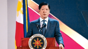 ▲拜登周四在白宮南坪舉行的國慶活動上向現役軍人及其家人發表講話。美聯社