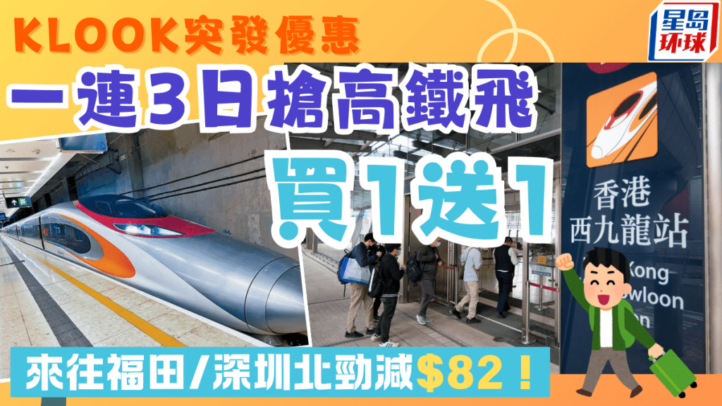 高鐵優惠|香港至福田/深圳北高鐵飛買1送1,指定3日訂購即減$82