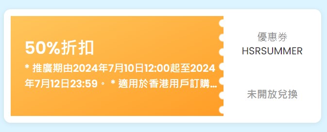 優惠碼數量有限,將于每日中午12時發放新名額,先用先得。