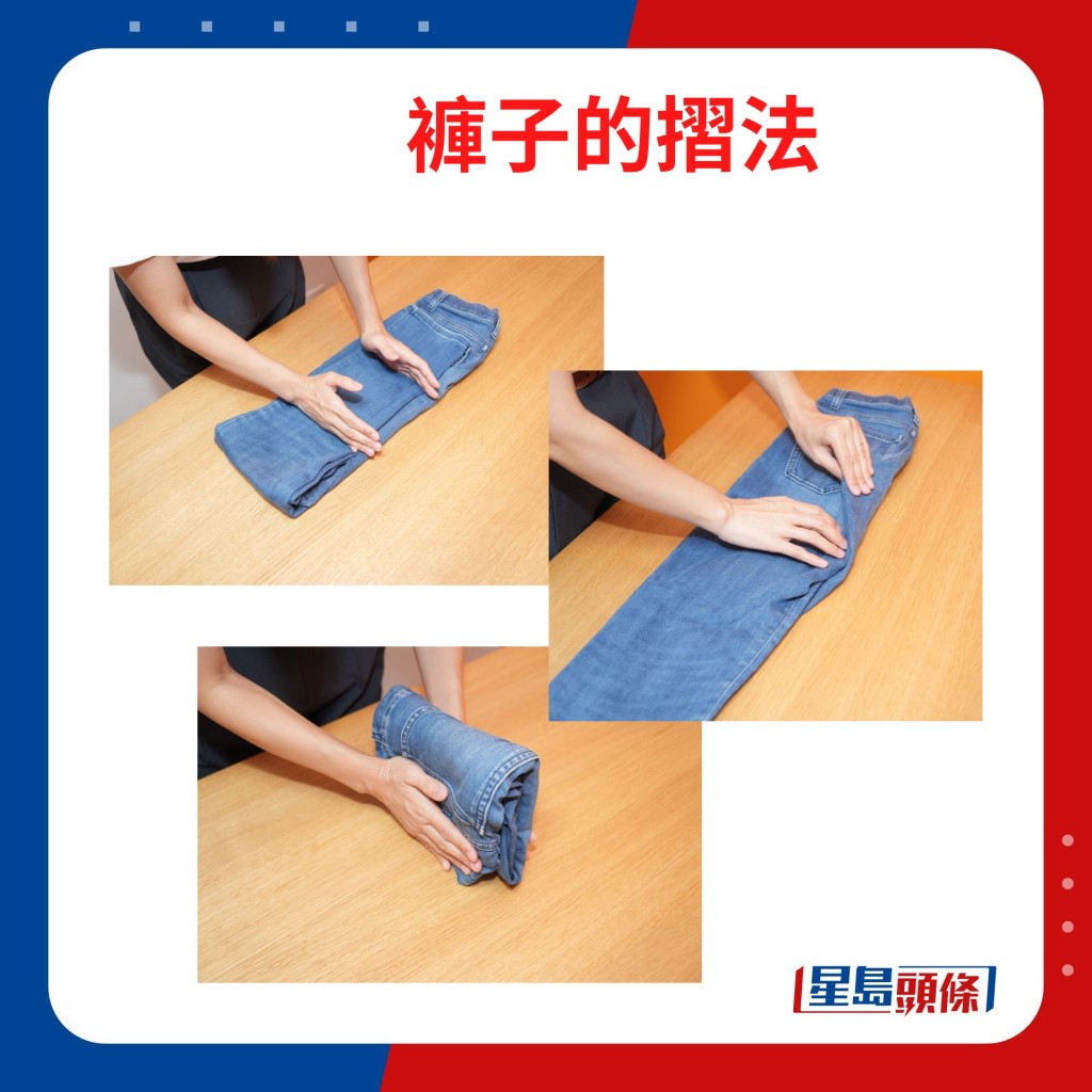 步驟4︰褲身成三等份,再對摺多兩下,摺成一個直立的長方形即完成。