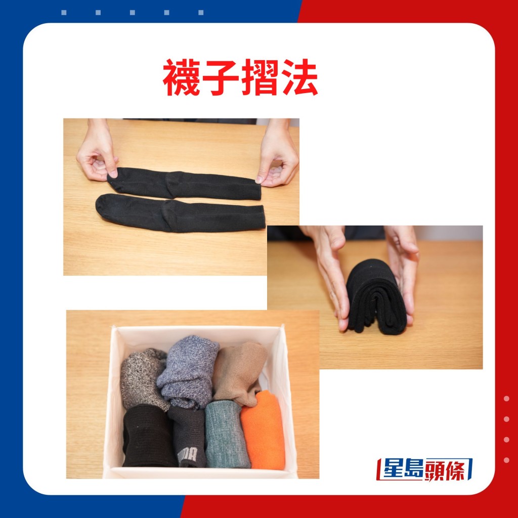 備注︰將一只襪子包裹另一襪子,會令襪頭變松弛,減低了一對襪的耐用度。而將襪子對摺,則沒有這個問題。
