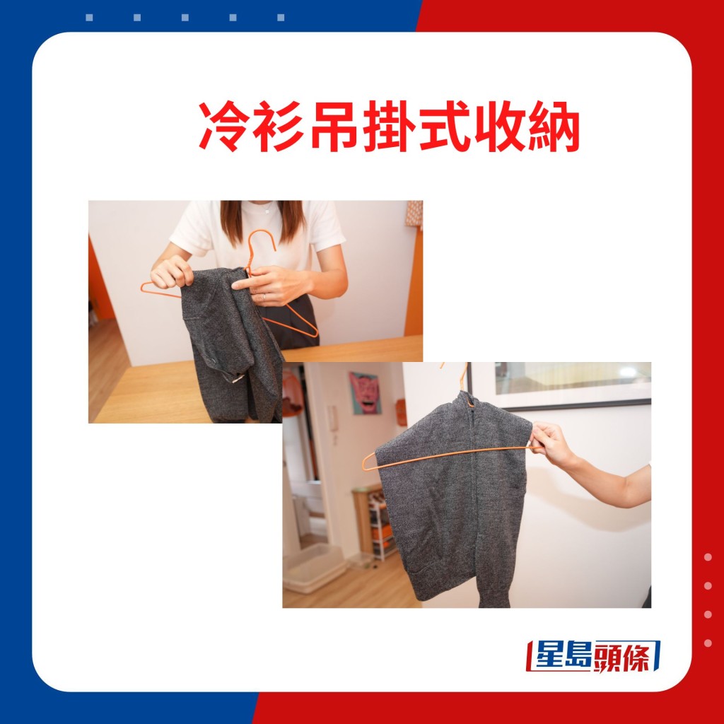 步驟3︰將毛衣底部疊到衣架另一端,這樣便做到慳位不變型。