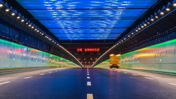 據深中通道管理中心介紹,深中通道照明分為基本照明和景觀照明兩部分。其中,深中通道海底隧道兩側布有可智能調節的全彩景觀燈帶,可以根據環境溫度、車流狀況變色。正常通行的情況下,會顯示綠色或藍白色,可設置流水跑動或七彩變換緩解長距離隧道通行的視覺疲勞。發生交通事故或緊急事件時,智能燈帶由近至遠分段顯示紅、黃、綠色,起到警醒的作用,并能引導人員有序疏散。