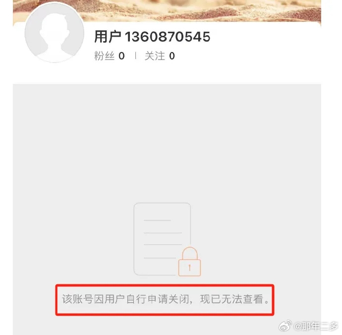 據網民今天稍早時上傳的截圖顯示,搜尋“新京報韓福濤”,會顯示“用戶不存在”;有網民上傳“用戶1360870545”賬號的截圖,顯示“該賬號因用戶自行申請關閉,現已無法查看”。