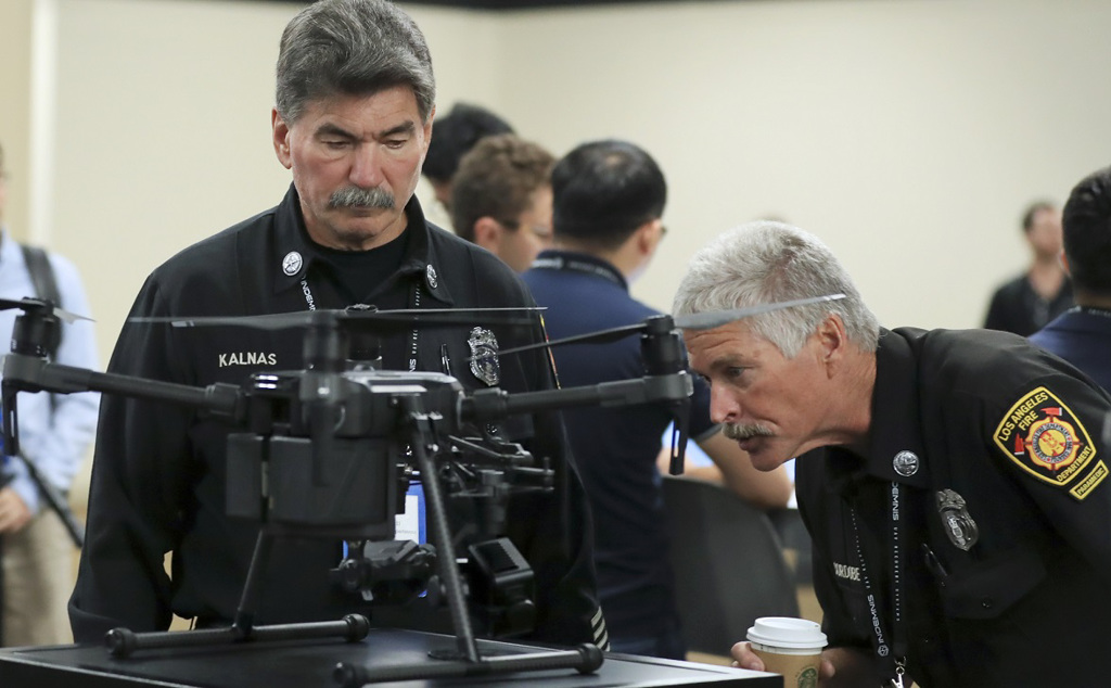 ▲美國民間廣泛使用中國制造的大疆無人機,甚至連美國警方等執法機構都成為忠實客戶。圖為大疆無人在洛杉磯展出。(圖/新華社)