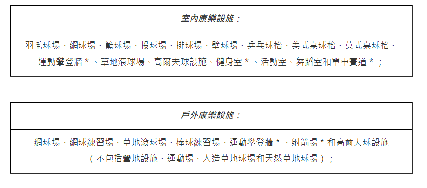 * 預訂這些設施的市民,必須持有相關的資歷證明(詳情)。
