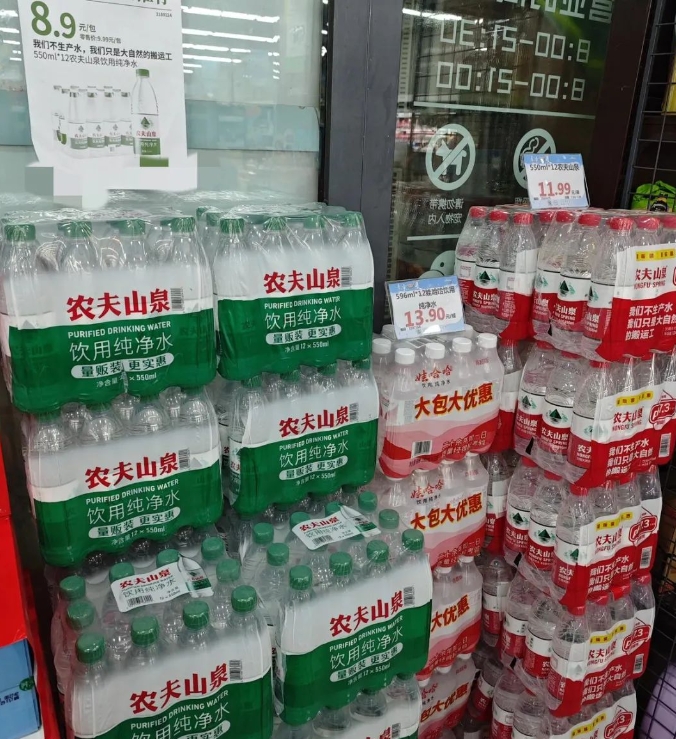 事實上,各大品牌瓶裝飲用水也紛紛推出促銷優惠,其中一瓶怡寶價格過去都是2元,但現在很多超市的優惠價為1.2元;娃哈哈飲用純凈水優惠后售價為一件16.8元,每件規格為12瓶,一瓶596ml,即單瓶價格約1.4元。