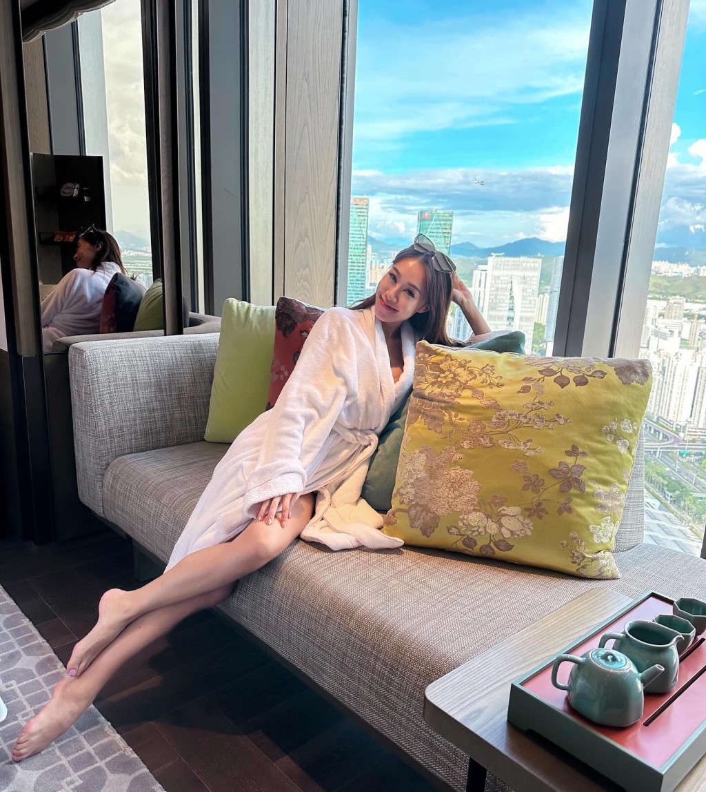 黃心妙在深圳的酒店房內打卡。