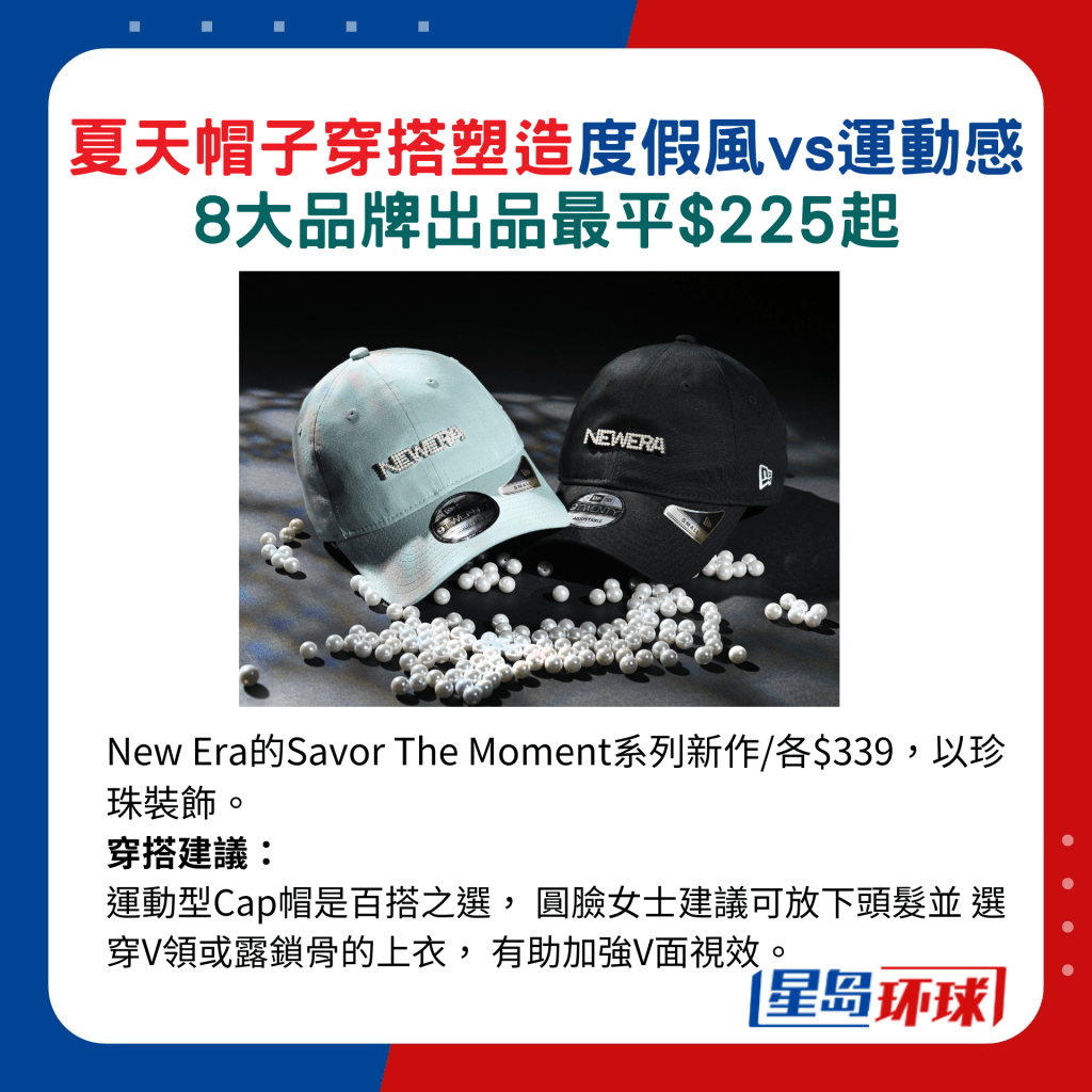 棒球帽亦即Cap帽,一向是流行單品,可配襯運動衣著或休閑造型。不管是鐘情時尚設計又或功能至上,都不乏新選擇。New Era新推的別注系列Savor The Moment,帶來Sea Breeze、New Era Pearl及Glisten Glow等主題帽款,其中New Era Pearl系列主打以珍珠拼湊品牌名字的圖案,加上粉色調及黑色設計,活潑又不失貴氣。The North Face新推的Cap帽設計就以跑步為主題,采用防紫外線的Lightrange材料制作,大玩拼色,跟運動服或休閑衣飾一拍即合。