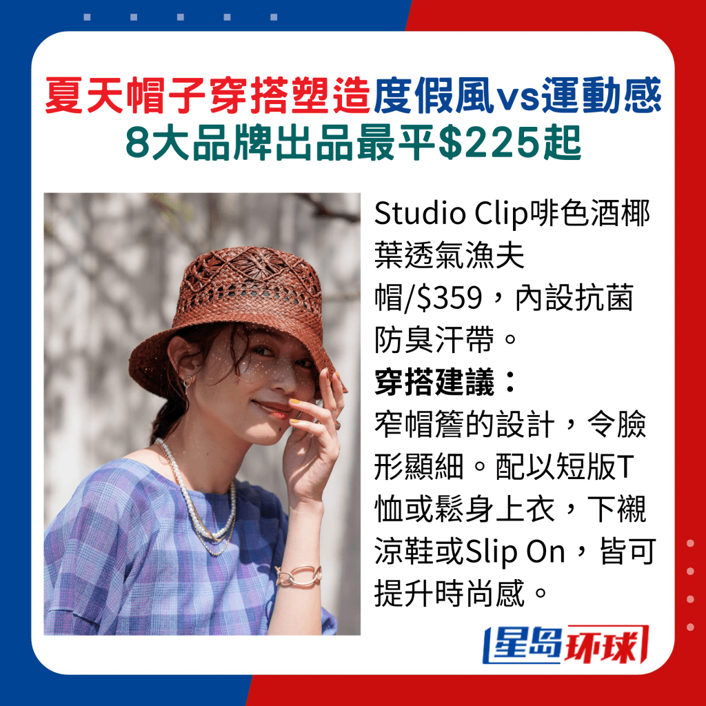 若想為一身夏日穿搭塑造度假風情,一頂草帽已足夠。性價比高的品牌如馬莎Zara等出品,新季都可見撞色混搭設計,例如前者以波浪邊細節增添女性韻味,后者則用上橫紋圖案吸引視線。闊邊的草帽設計可令面形顯細,配以松身長裙或一 字膊上衣及半截裙,更見飄逸。日系品牌如Studio ClipCA4LA等的新品,著重編織技巧,當中包括獨特圖案或綴以鏤空細節的款式。CA4LA其中一款用上禮帽設計并飾上巨型蝴蝶結,輕易營造亮眼焦點,圓渾的帽邊亦可柔和面部的稜角線條,配襯T恤或連身裙都休閑別致。