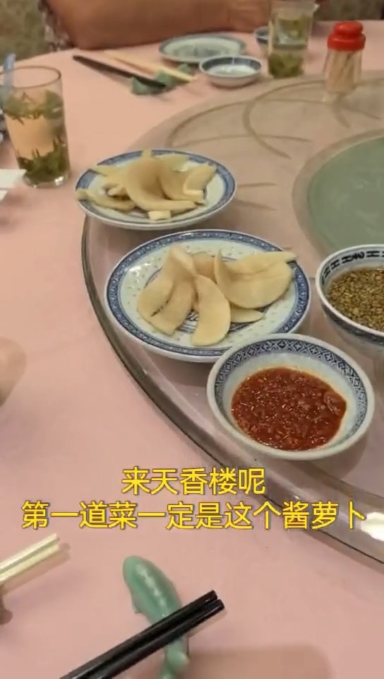影片中可見,同枱用膳的更有于2021年榮獲“亞洲50大餐廳”榜首、“世界50大餐廳”第十名暨唯一中餐廳的米芝蓮一星粵菜館——大班樓創辦人葉一南,他們共品嘗了十道天香樓的經典菜式,由前菜至甜點都贊不絕口。蔡瀾表示到天香樓必定以“醬蘿卜”作開首第一道菜,“不知為甚么其他地方做不出這味道,非常之好吃,真的與眾不同”,好味程度更令他忘形,徒手將蘿卜放入口中品嘗。