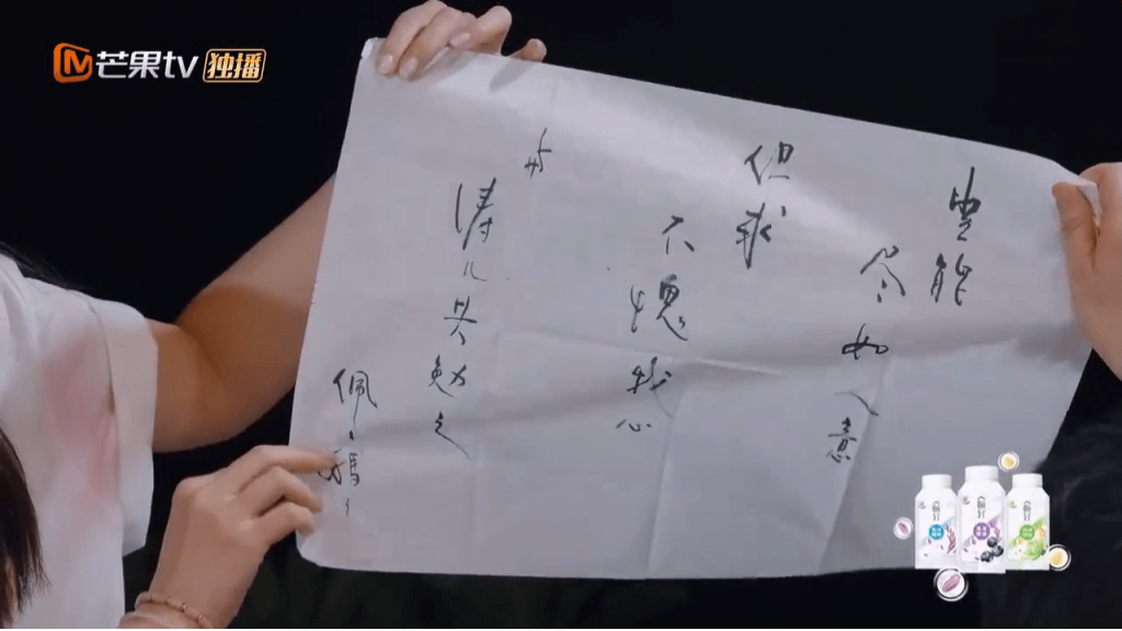 ▲劉濤在節目中拿出當時鄭佩佩在西班牙給她的字條,上面寫著:“豈能盡如人意,但求不愧我心,與濤兒共勉之。 佩媽”