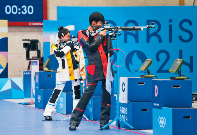 黃雨婷與盛李豪在10米氣步槍混合團體決賽中,奪得今屆首金。