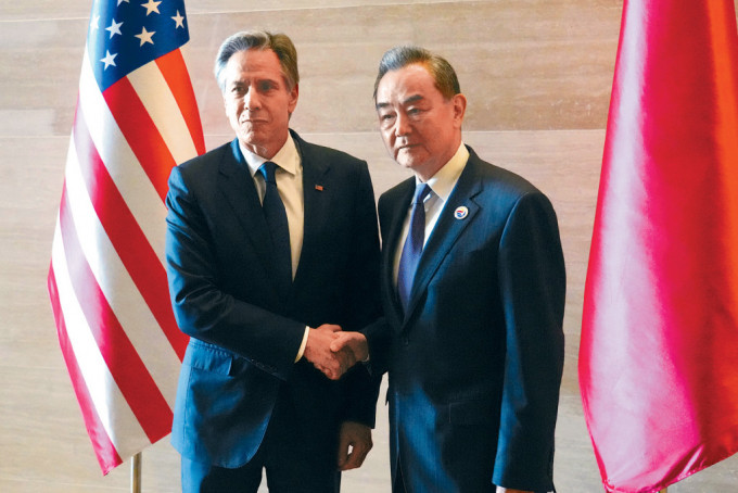 出訪老撾的外長王毅昨日與美國國務卿布林肯會面。