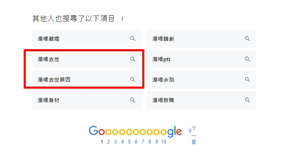 湯唯永別、去世相關搜尋,讓部分網友被誤導。