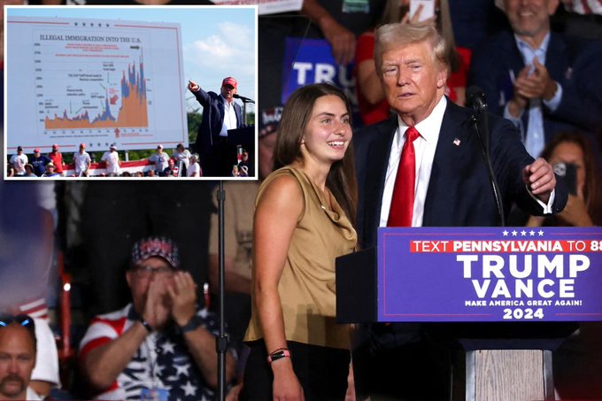 綜合外電報導,特朗普于賓州哈里斯堡(Harrisburg)繼續他的造勢活動,這次他提到了遇刺當天,他的右手邊放置著一張跟移民相關的圖表,沒多久后就發生了槍擊。 對此,他感謝這位負責操作圖表的正妹工作人員,說她是個“電腦天才”(computer genius),更大贊該圖表:“我的余生都會和這張圖表一起入睡!” 并邀請該正妹上臺發表談話。