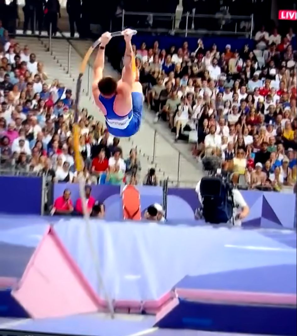 • 巴黎奧運丨法國21歲撐竿跳型男因下體卡橫桿落??!畫面曝光