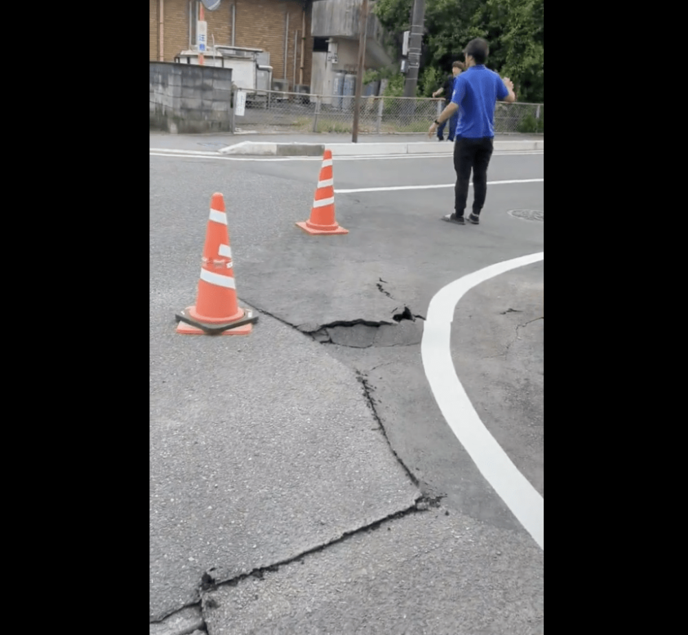 亦有鹿兒島居民拍到,有道路在地震后裂開甚至出現凹陷。