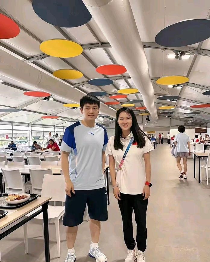 陳若琳樊振東兩位如此優秀的運動員在食堂相遇并合影留念。