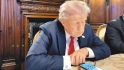 特朗普周一在佛州海湖莊園透過手機接受馬斯克訪問。