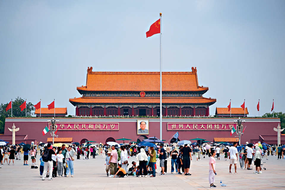 ▲天安門廣場的旗桿,正好屹立在北京中軸線上面。