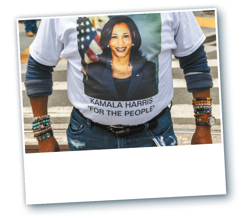 ▲哈里斯8月11日在三藩市出席籌款會,場外一名支持者身穿印有其2020年競選總統口號的T恤。Carlos Avila Gonzalez/三藩市紀事報/美聯社