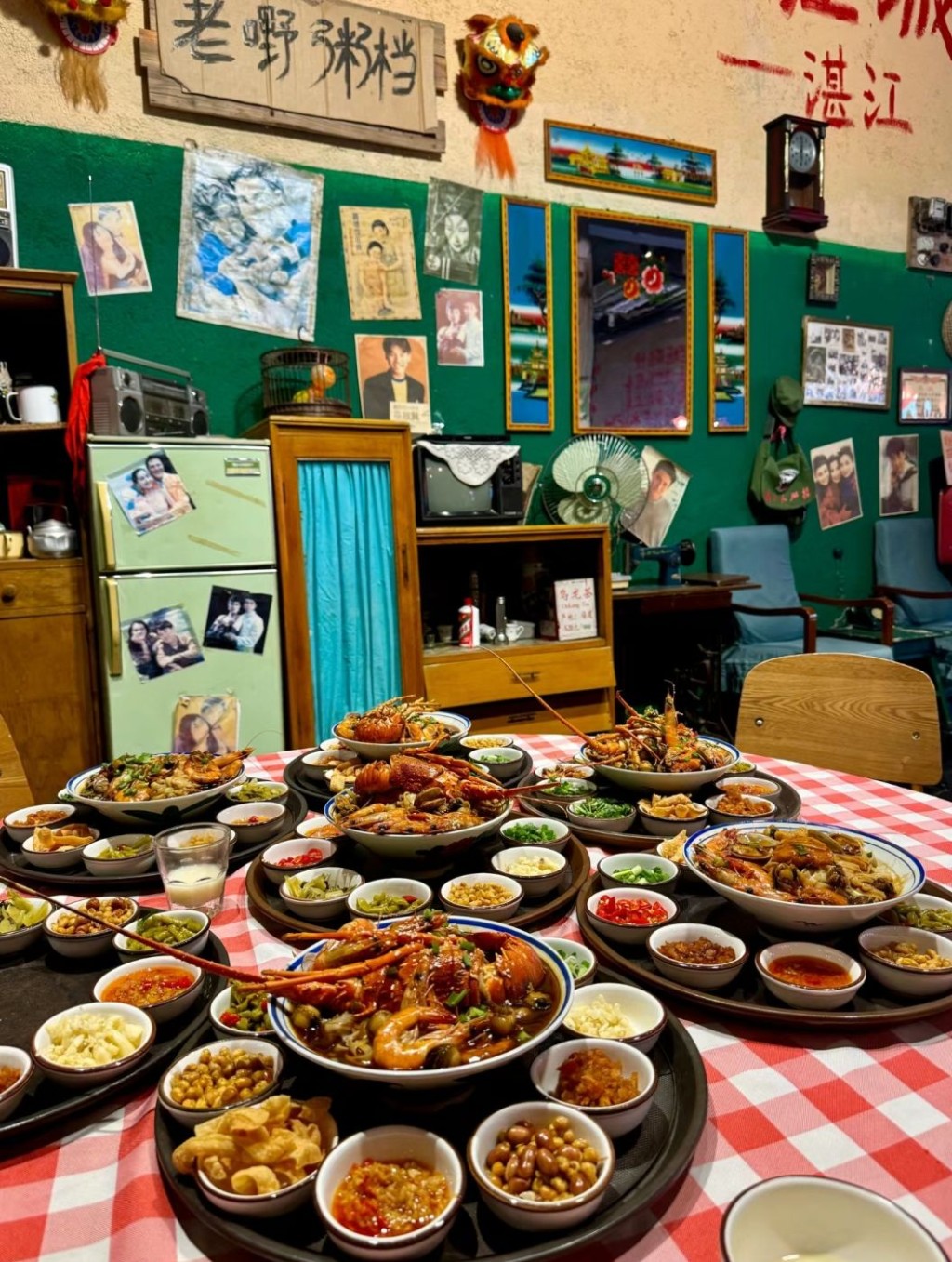 老嘢粥檔三帆店是一間湛江文化主題餐廳,舊雪柜、電視機、衣車、老照片,很有80年代的懷舊氣氛,有種舊廣東家庭用餐的感覺。必吃¥9.9水井頭海鮮撈粉,一大盤,有扇貝、鮮蝦、花蛤、墨魚餅、河粉。¥39.9龍蝦海鮮撈粉,半只龍蝦比手掌還大,肉質鮮美。自助調味料有十多款選擇。還有泥丁粥、生灼粉腸、芝士焗龍蝦,豆漿免費供應。