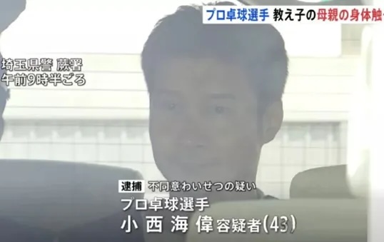 根據東京廣播公司等多家日媒21日報道,日本乒乓球名將小西海偉因涉嫌猥褻一名學生母親被警方逮捕。