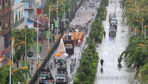 喪禮送別隊伍人數龐大。