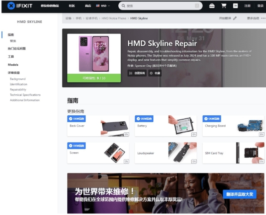 ▲iFixit網站提供有齊Skykine拆殼、換電、換芒等自行維修教學。