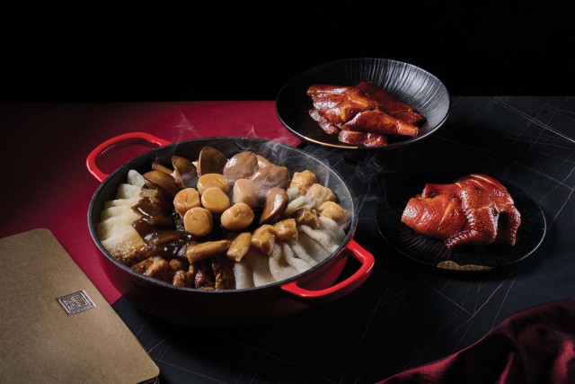 自從早幾年疫情被困,不少港人都愛上安坐家中享用美食,中秋團圓飯來一個奢華版外賣盆菜,或者不失為好選擇。香港JW萬豪酒店的中菜廳萬豪金殿是米其林一星餐廳,獲米其林盛贊為精致粵菜,傳統與創新兼備。適逢中秋特意推出極豐盛的應節盆菜,集齊十八款上乘食材,包括澳洲海參、三十三頭南非吉品鮑魚、發菜、鵝掌、花菇、瑤柱甫、茶熏平原雞、燒鵝、蝦籽六頭虎蝦球、百花釀羊肚菌等等,配以鮮美鮑魚汁,一次過滿足多種口感愿望。