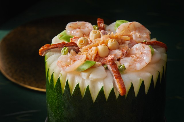 尖沙咀國金軒The Mira是米其林推薦當代粵菜食府,以巧手粵菜工藝聞名。中秋節前夕推出了三款合時湯品,“原只鮮蟹鉗錦繡冬瓜盅”(每位 $398,須提前24小時預訂)消暑解熱,以原個冬瓜盛載田雞、雞腎、老雞、赤肉及金華火腿等,佐以原只肉蟹鉗蒸燉足足6小時,滋味豐富。另一款“原個椰皇松茸花膠燉竹絲雞湯”(每位 $368)則以原個泰國椰皇盛載竹絲雞及龍崗雞,配上花膠及松茸,補而不燥、既滋陰清熱又養顏。