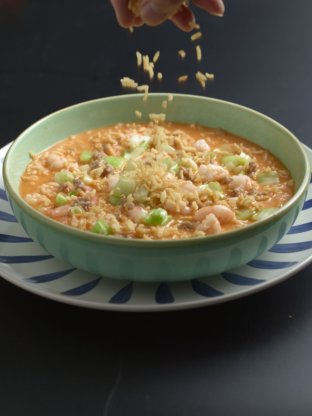 今個中秋,鴻師傅就特別推薦幾道海鮮小菜,份量足,賣相好適合與家人分享。前菜可先來荔枝香脆蝦丸($238),混合新鮮蝦、墨魚滑打至起起膠,再包入鮮甜多汁荔枝肉,外層裹上紅色脆米炸香,吃來口感豐富,彈牙香口,實手工之作。休漁期剛過,馬友魚正肥,這里做三種吃法,任君選擇。經典潮式凍馬友($388),店家特別起肉,凍成方塊,啖啖吃出魚油的醇鮮與肉質的緊致。要香口得試馬友一夜情($338),魚肉粗鹽醃過夜,帶走多馀水份,煎封兩面,吃來咸香滋味。還有新菜,陳年花雕蒸馬友($338),魚油與花雕酒香相輔相成,入魚肉嫩滑,醉香綿綿。單尾推薦鴻師傅新作,彩虹炒飯($148),上臺呈現粉紅、鮮黃兩層色調,分別是加入火龍果汁制成的粉紅炒飯以及傳統“金鑲銀”,吃來飯粒分明,夾雜爽彈鮮蝦,盡顯功架。