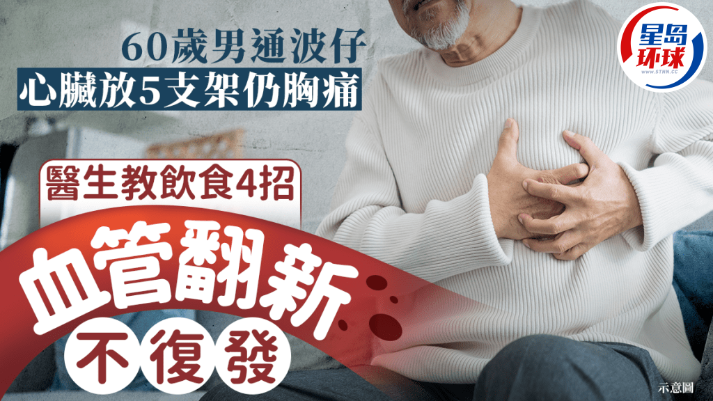 飲食比手術更可改善心血管健康? 一名60歲男子因心臟血管狹窄問題,心臟血管已經通波仔手術先后安裝了5個支架,但胸痛問題未見改善,病情甚至惡化至不能再接受手術。 有醫生于是向他建議4大飲食貼士,包括戒吃2類食物,最終不但成功大幅改善其胸痛情況,其心臟血管甚至被醫生形容為在2年間“翻新”。