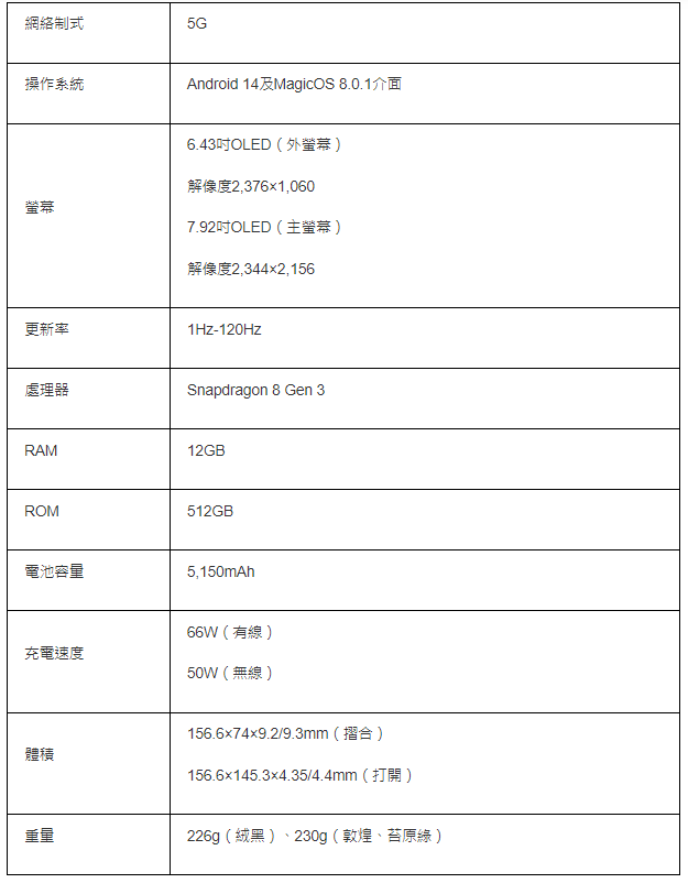 HONOR Magic V3規格