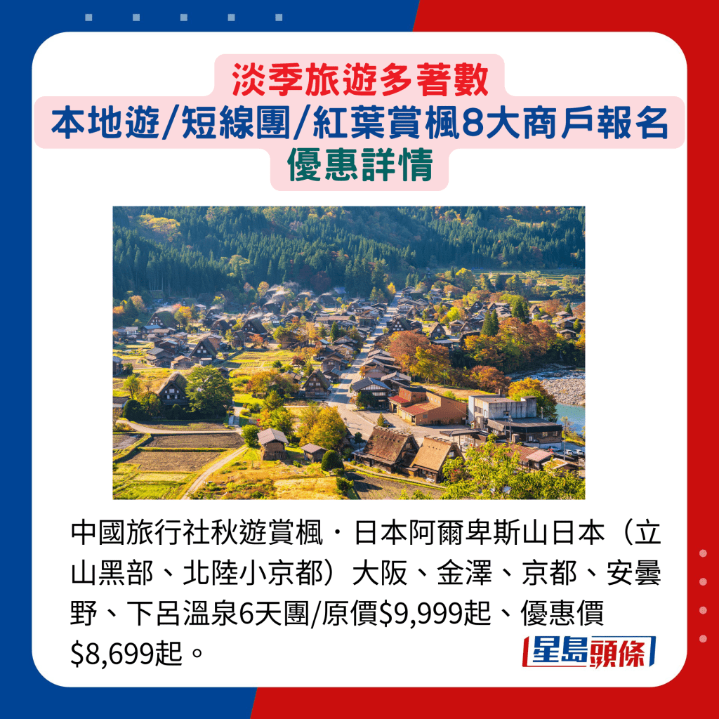 淡季旅游外地賞楓著數│ 紅葉團  早鳥優惠最多減$300