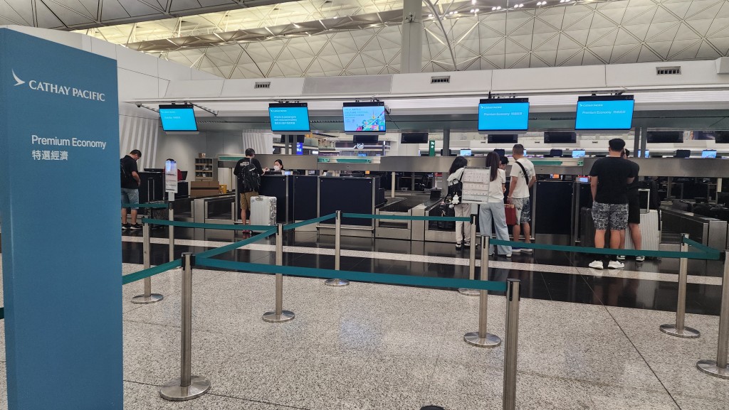 國泰公布部分航機停飛,取消周一至周三共48班航班,昨日(2日)未見未見大批旅客排隊及鼓課。