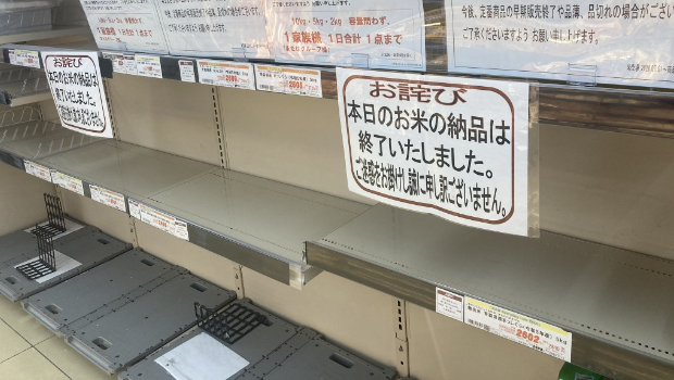 據日媒報導,日本2023年夏季酷熱天氣下令米粒出現高溫熱害,導致稻米產量大減,再加上疫情后大批游客涌入日本旅行,使市面上的白米庫存減少。此外,日本政府8月初發布南海海槽地震臨時情報、8月底珊珊臺風侵襲日本,讓許不少日本人開始囤米,導致日本國產米開始從各超市貨架上消失。
