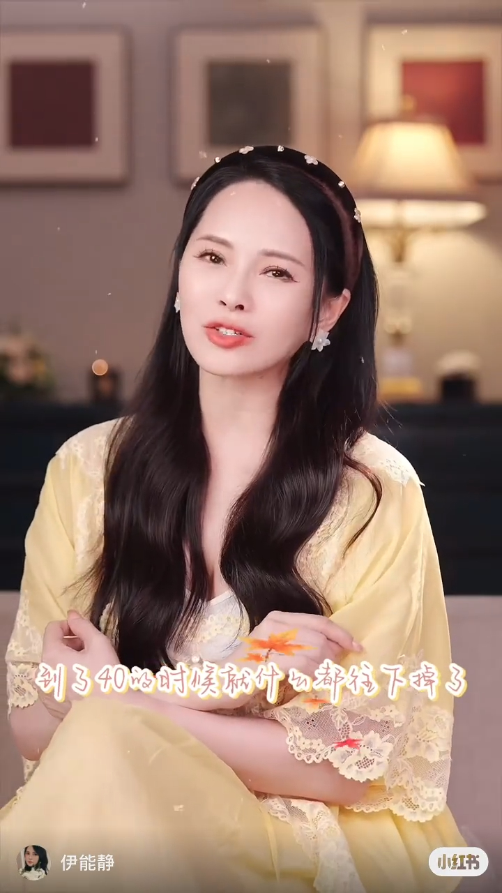 最近,伊能靜在小紅書上拍片分享女性會面臨的中年后身體的變化,強調保養的重要性。