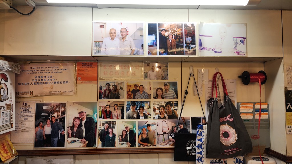 ▲店內當眼位置貼有東主與“發哥”周潤發、盧海鵬、馮素波等的合照。