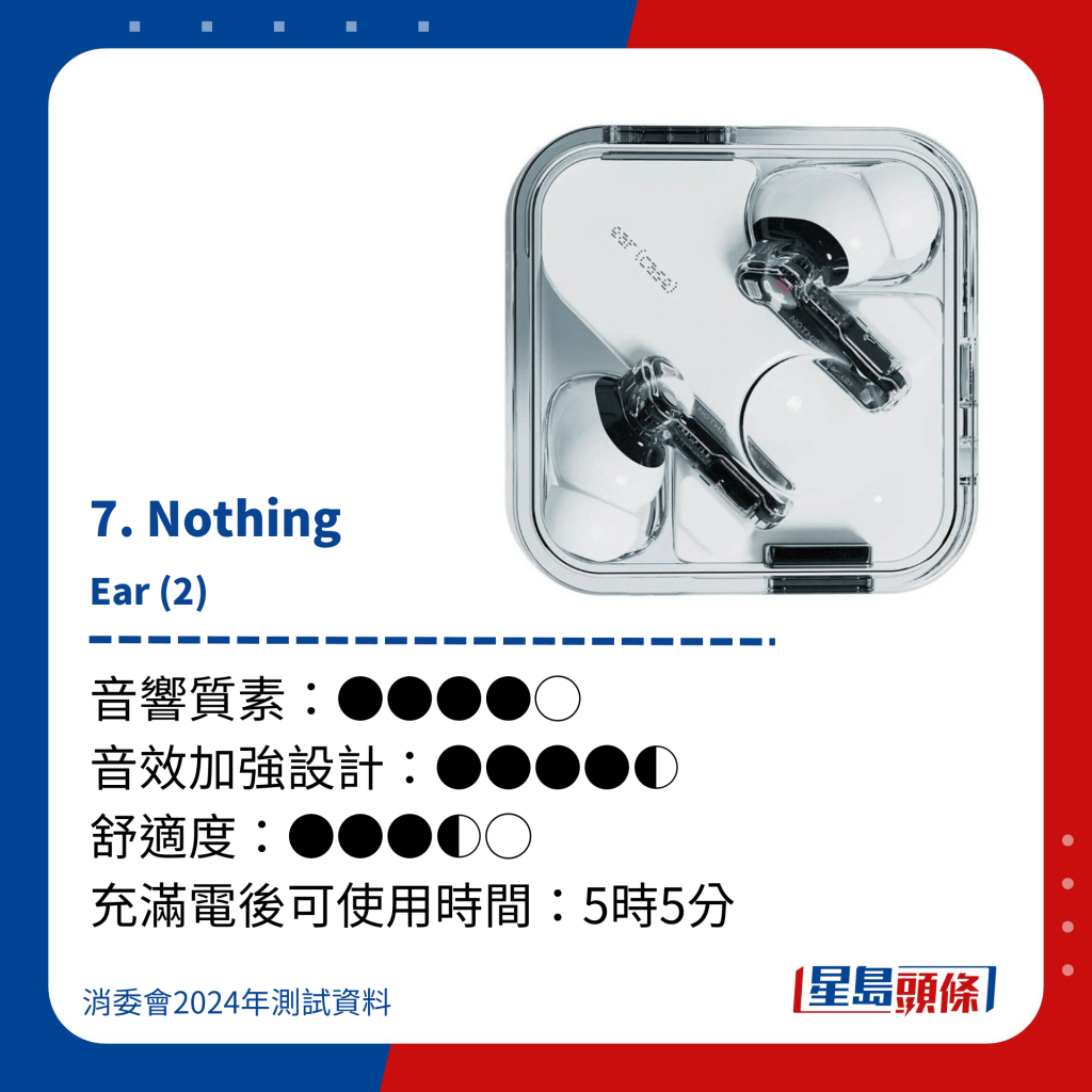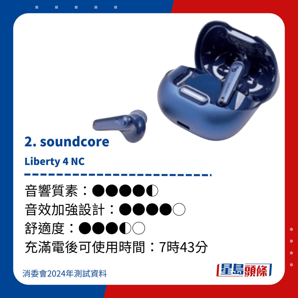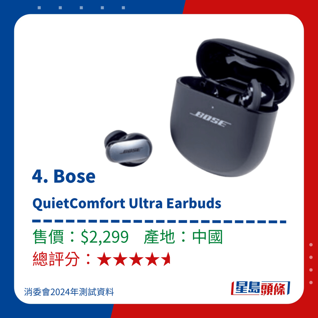 此外,“soundcore”Liberty 4 NC($799)、“Denon”PerL($1,580)及PerL Pro($2,780)、“Bose”QuietComfort Ultra Earbuds($2,299)、“華為Huawei”FreeBuds Pro 3($1,688)、“Nothing”Ear (2)($1,199)和“Jabra”Elite 8 Active($1,799)等型號的總評分均達到4分(5分為滿分)或以上。