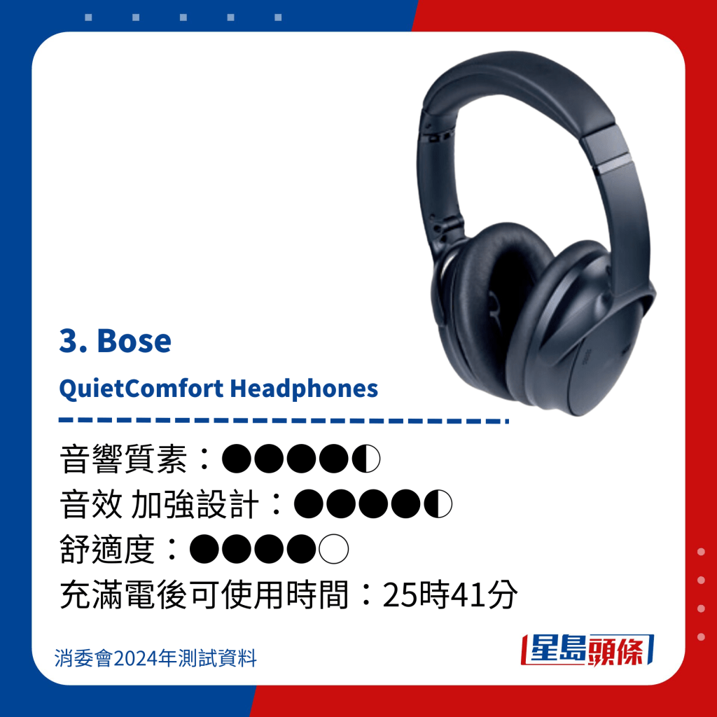 不少人也會長時間佩戴耳機使用,因此消委會亦就耳機的佩戴舒適度進行評分,結果顯示真無線耳機“Shokz”OpenFit和頭戴式耳機“Bose”QuietComfort Headphones在佩戴時較為舒適,均獲4分評價。