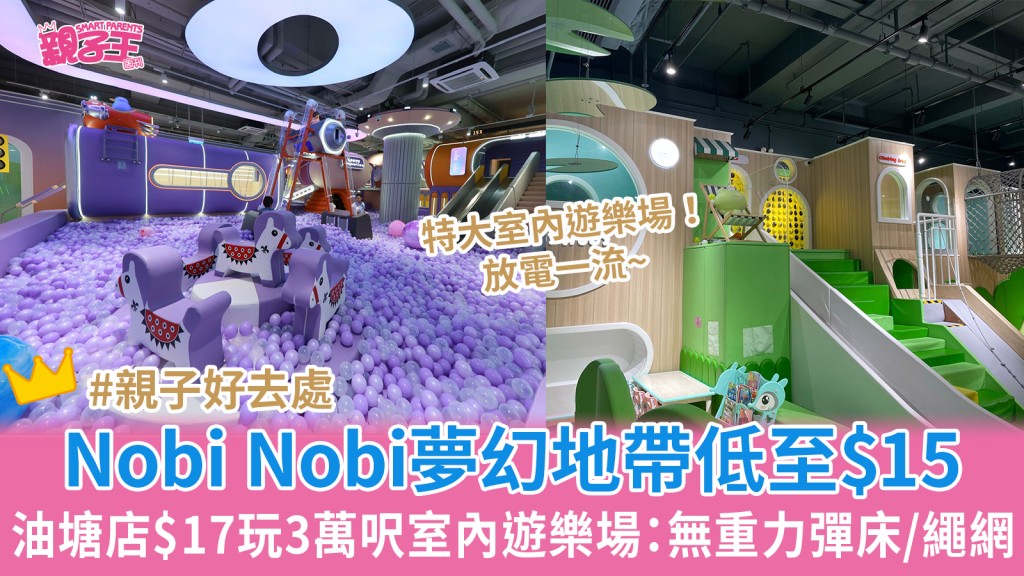 中秋過后又到十一假期,爸媽想帶小朋友去松一松,紓緩一下學習壓力,最好就是帶他們去室內游樂場放電,大玩特玩! 位于油塘大本型及青衣城的Nobi Nobi夢幻地帶兩大室內游樂場特別推出快閃優惠,低至$15即可放電! 兩個室內游樂場設施超齊備,油塘場更占地超過30,000呎! 即睇快閃優惠詳情及連結,買定入場券讓小朋友玩個夠。