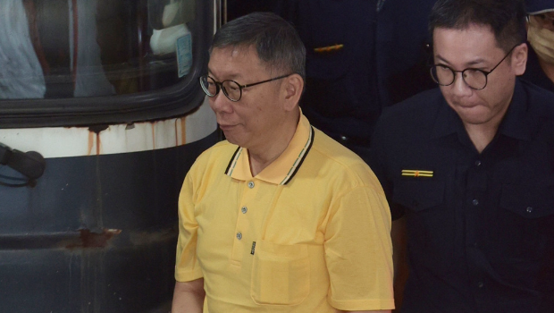 ▲臺北地檢署18日提訊前臺北市長、民眾黨主席柯文哲(黃衣者),圖為柯下囚車步入臺北地檢署。中時資料照