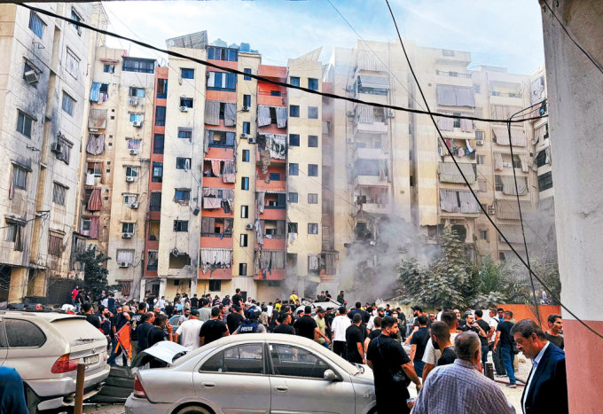 ▲黎巴嫩貝魯特南郊周五遭以軍襲擊,有住宅大樓損毀。